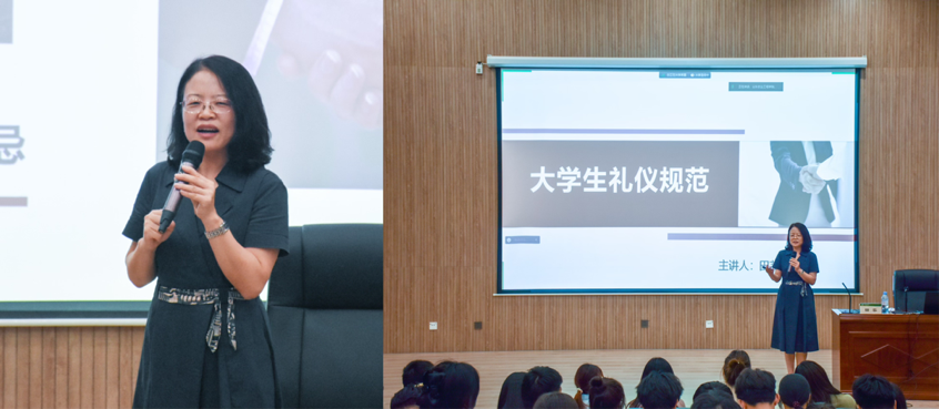 随后,李玉红老师以“浅谈公文写作之道”为切入点,围绕公文的格式与结构、语言表达和注意事项,为学员们明晰了公文写作的规范和技巧。田芸老师深入探讨了文明礼仪的定义、特点以及与社会主义核心价值观的关系,细致讲授了大学生礼仪规范的要点,并亲身示范,帮助学员们对文明礼仪的重要性及礼仪规范要求有了更深刻的理解。
