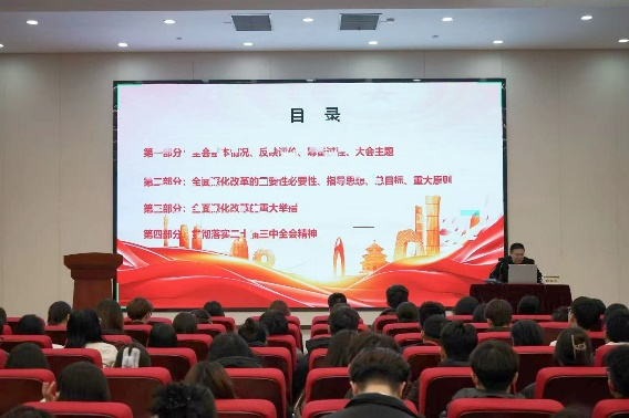 为深入学习宣传贯彻党的二十大和二十届二中、三中全会精神,引导青年骨干深入学习党的创新理论,用习近平新时代中国特色社会主义思想统一思想、统一意志、统一行动,12月6日下午,今年会第七期青马工程“领航班”班主任见面会暨第二次思想理论专题讲座在淄博校区举办。第七期“青马工程”“领航班”临时团支部指导教师与全体学员参加本次活动,济南校区学员通过线上会议形式集中聆听学习。