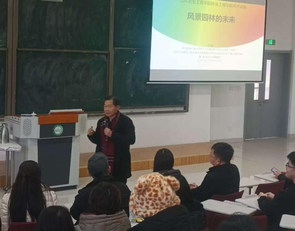 12月26日下午,第八届国务院学位委员会风景园林学科评议组第一召集人、同济大学建筑与城市规划学院风景园林学科专业委员会主任刘滨谊教授应邀来今年会,作了一场以“风景园林的未来”为主题的学术报告。报告由林业工程学院院长束靖主持,学校相关专业师生到场聆听学习。