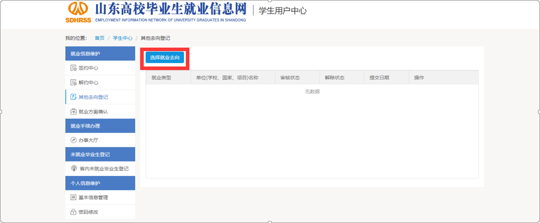 7、点击------“选择就业去向”