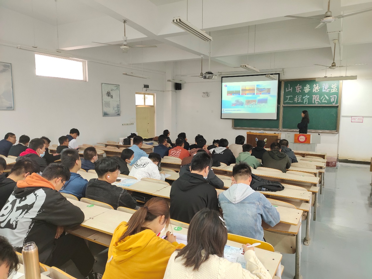 本次宣讲会由山东鲁能德益工程有限公司人事丁经理的讲话拉开序幕,她通过播放宣传片,为大家讲述了公司二十余年的发展历程并介绍了公司招聘要求和福利、待遇。随后对公司文化、公司现状及实习生职业发展、人才培养等方面作了具体介绍,丁经理向同学们坦言,实际工作中,对学校知识的运用度很低,因此公司通过建立系统化培训,使应届毕业生可以快速适应工作,积累工作经验。宣讲会结束后,有意向的毕业生们填写了报名表,并与公司人员进行了面对面交流,详细咨询了相关岗位的工作职责、就业前景等情况。