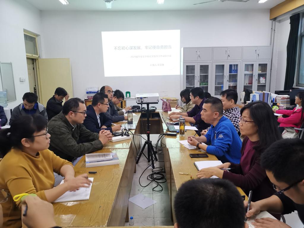 会议由教学秘书孙忠为主持,总支书记马勇介绍了我院主题教育活动的推进情况,目前出现的问题以及下一步的工作重点。院长宋卫海针对过去三年毕业生论文指导工作出现的问题,按照本科合格评估的要求和教育部相关文件精神,对2020届毕业生毕业设计和毕业论文指导工作进行了动员和部署,宋院长从如何通过产学研结合来进行论文选题,任务书撰写进行了经验分享,对学生开题,教师指导和论文答辩提出了切实可行的建议,对教师特别是党员教师如何担当作为提出了明确的要求。宋院长又传达了学校在10月9日召开的本科评估工作会议的会议精神,对相关工进行了任务分解,激励与会教师要“不忘初心谋发展,牢记使命勇担当”,立足本职岗位,团结互助、攻坚克难,确保我院圆满完成学校布置的工作。副院长隋荣卷介绍了实验室重点工作的推进情况,强调了实验室安工作的重要性。
