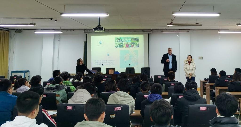 学生见面会上,Cyril Gavaghan先生向在座大学生详细介绍了垂利理工学院的办学历史,留学申请条件和留学费用等情况。