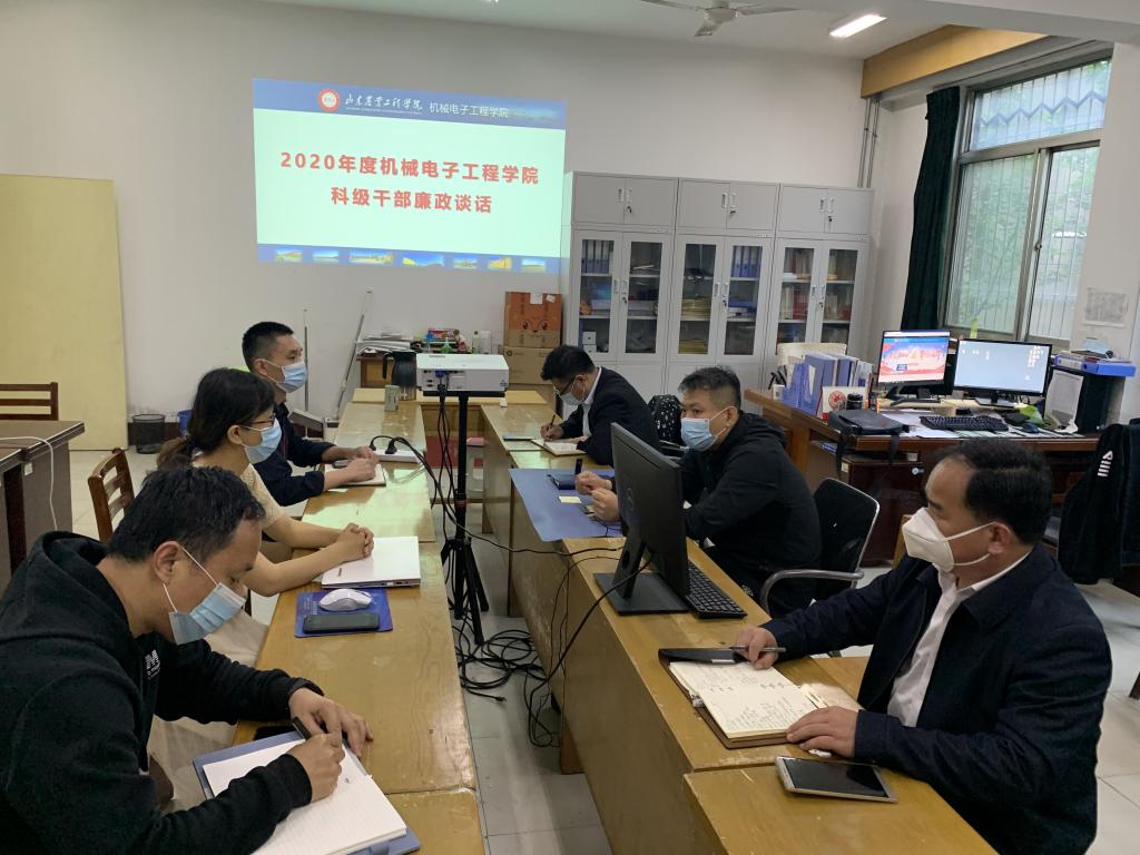 按照学校要求,为加强对党员干部的教育、管理和监督,机电学院领导于5月7日下午,在济南办公室对3名新提任科级干部进行集体廉政谈话。谈话活动由机械电子工程学院党总支副书记、院长宋卫海主持,副院长李震、赵志桓参加。