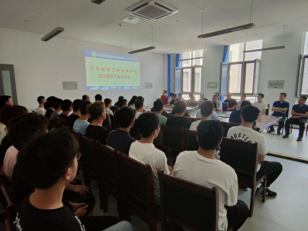 上午第一节课上课前,各班级任课教师宣读《本科教学工作合格评估百日誓师大会动员令》,同学们共同宣誓。随后,学院组织部分同学和教师于淄理工东B304会议室,共同学习动员令并为夺取本科评估的最后胜利进行宣誓。王西奎校长在动员令中提到,迎评倒计时100天已经开始,时间紧迫,刻不容缓。希望大家一定要牢固树立主人翁意识,增强母校荣我光荣的使命感,认真学习评估知识手册,模范遵守课堂纪律和宿舍要求,时时注意校园文明风尚,一切行动听指挥,各个方面作表率。为夺取本科教学工作合格评估的最终胜利,为推进学校事业迈向新的历史阶段而努力奋斗。
