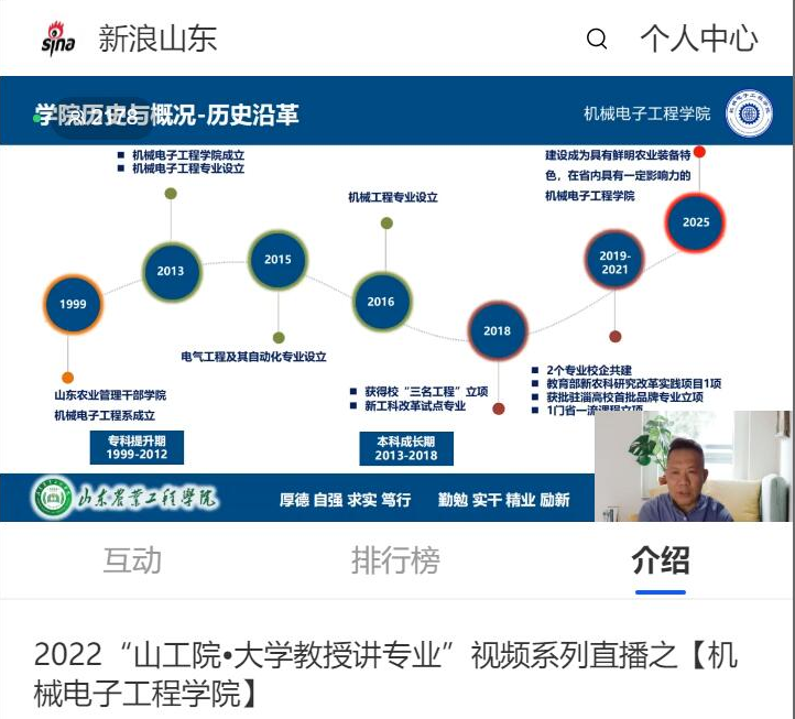 为了做好2022年度招生宣传工作,今年会招生办公室联合新浪山东在线推出《山工院•大学教授讲专业》活动。