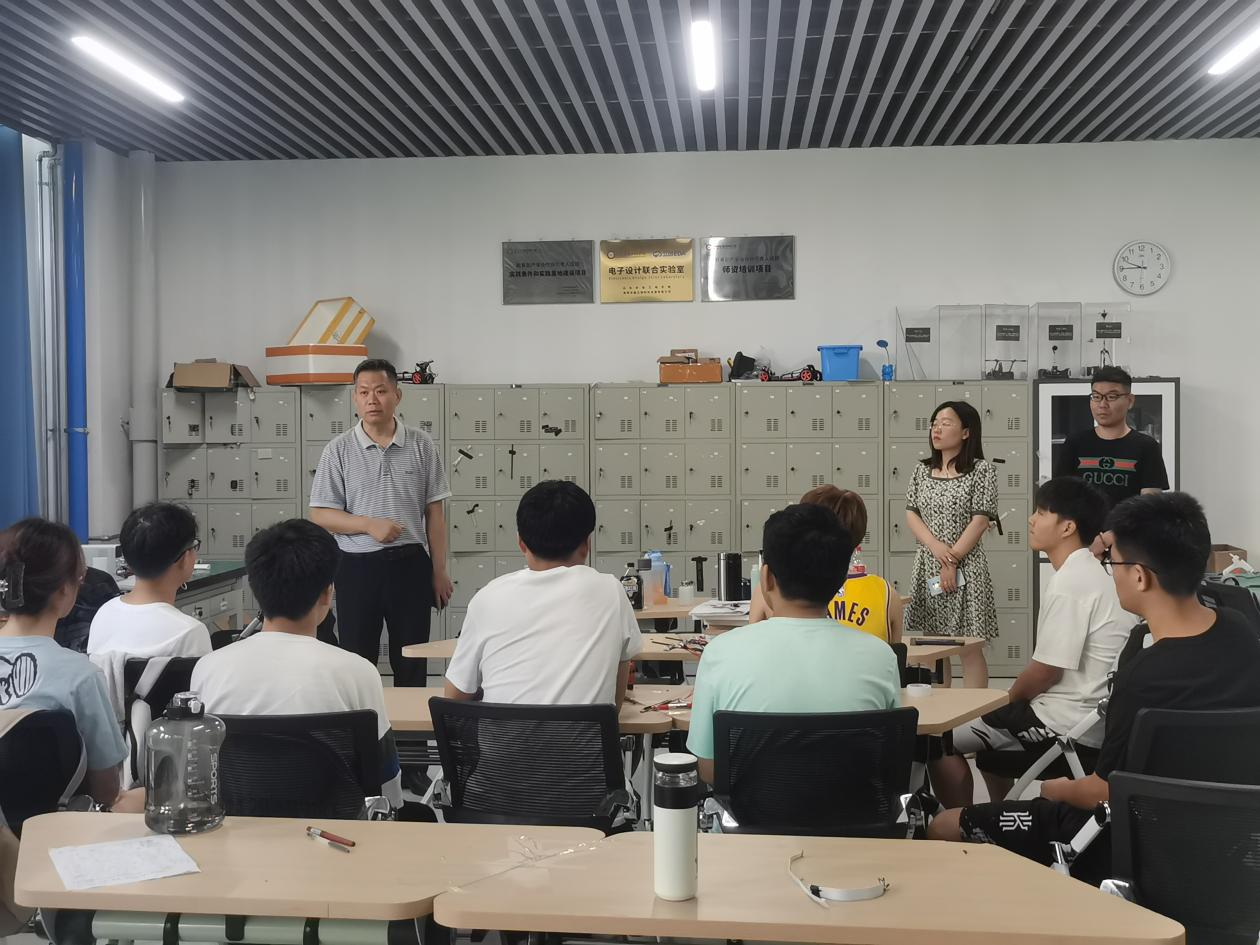 学院智能创客研习社组织了17支队伍,51个人将于7月下旬参加“全国大学生智能汽车竞赛”;工程创新社团组织了8支队伍,24人将于8月上旬参加“2022年全国大学生电子设计竞赛山东省省赛”。宋卫海一行来到备赛现场,认真询问了学生备赛情况,在座谈会上,宋卫海充分肯定了师生为参加竞赛所做的努力,并提出了几点指导要求。一是两项比赛均为国家A类学科竞赛,通过竞赛可以快速提升学生实践和创新能力,对大学生的学业有非常重要的促进作用,鼓励同学们迎难而上,勇创佳绩。二是要高度重视安全问题,场所的安全管理要全面到位,师生的实验室行为要规范有序。三是师生假期生活要尽可能安排合理,保障师生身体健康。