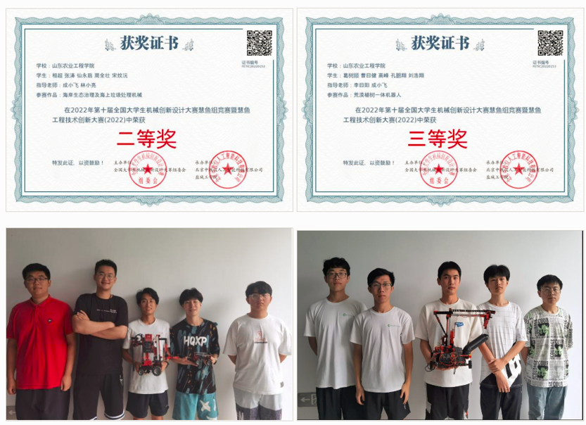 近日,由全国大学生机械创新设计大赛组委会主办的第十届全国大学生机械创新设计大赛慧鱼组竞赛暨第十二届全国慧鱼工程技术创新大赛在盐城工学院成功举办。来自华中科技大学、哈尔滨工业大学等270余所高校选送的1153件作品参加评比,经过激烈角逐,我院由李曰阳、成小飞、林小亮老师指导的海岸生态治理及海上垃圾处理机械和荒漠植树一体机器人2个作品,分别斩获全国二等奖1项,三等奖1项。