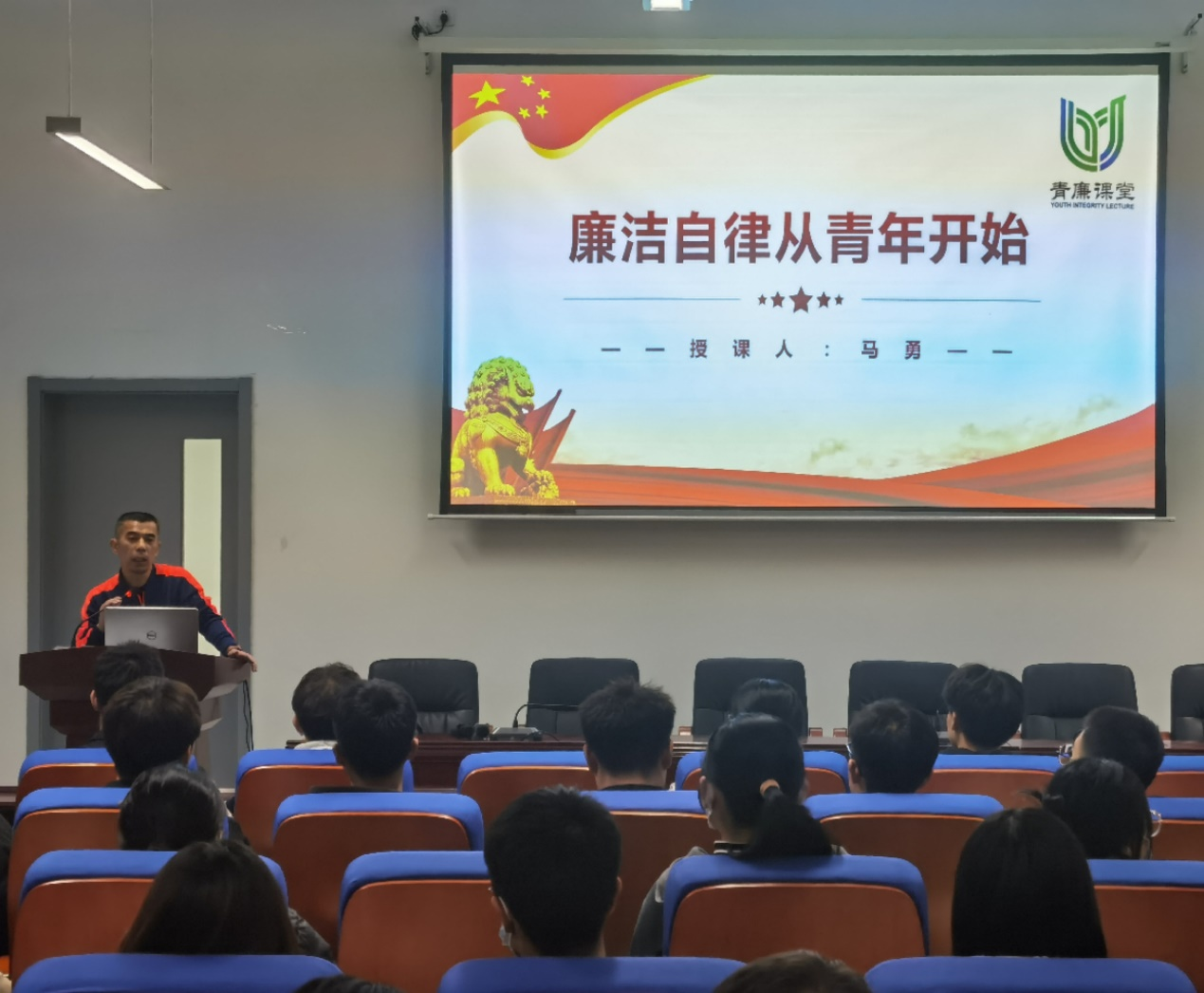他强调,同学们要勤掸“思想尘”,锻炼意志力,通过思想教育工作提高廉政自律的意识,做到防患于未然;要多思“贪欲害”,厚植坚忍力,通过讲解案例,让同学们了解贪腐的危害,警示同学们筑牢廉洁防线;要常破“心中贼”,增强自制力,鼓励同学们通过法律法规学习,提高自控能力,保持廉洁干事的初心。