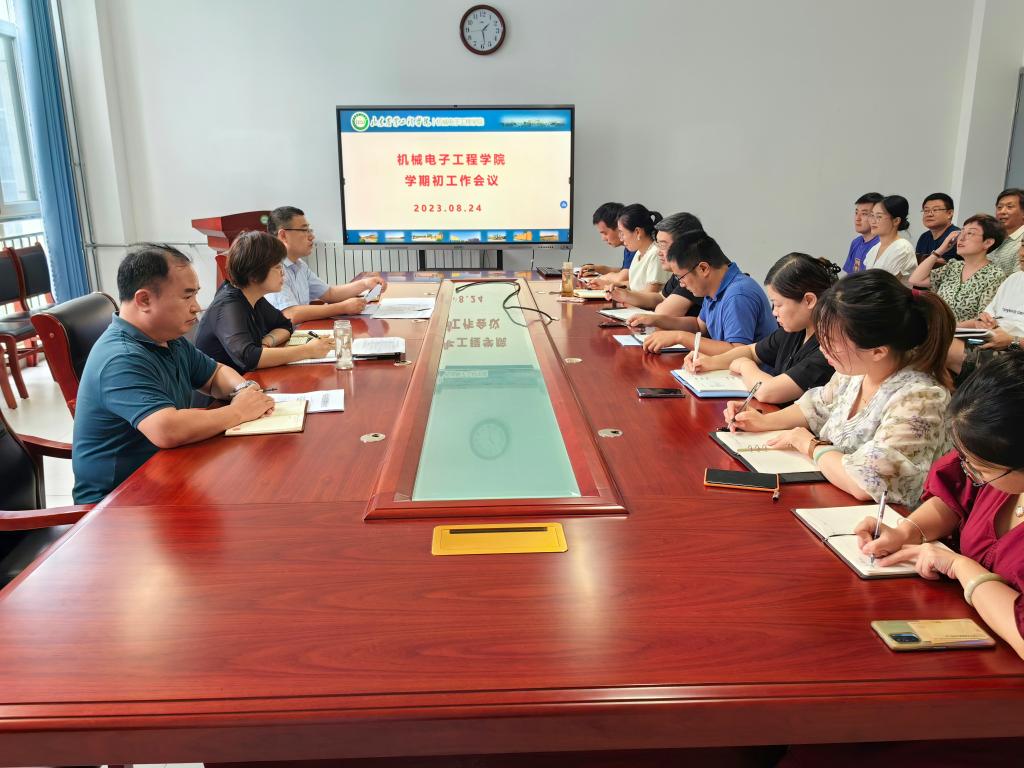 8月24日下午,机械电子工程学院在淄博校区理工东楼B304会议室召开学期初工作会议,传达学习《张鸿波同志在2023年暑期处级干部读书班上的动员讲话》和《李进京同志在2023年暑期处级干部读书班上的总结讲话》精神,部署学期初主要工作任务。会议由机电学院院长赵志桓主持,党总支书记李艳出席并讲话,学院党总支副书记、副院长李震及全体教职工参加会议。