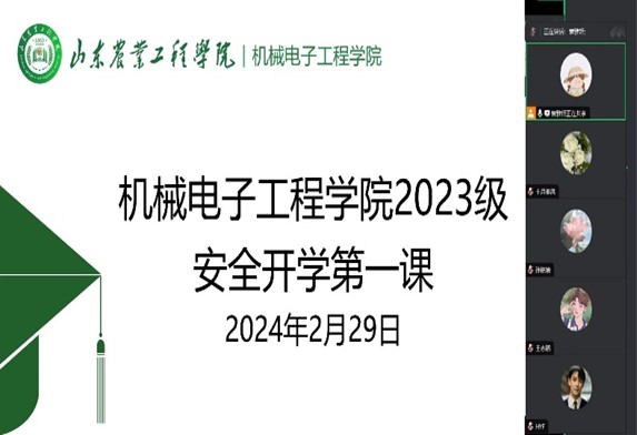 为进一步加强对学生的安全教育与管理,引导学生提高安全素养,增强安全防范意识,确保同学们安全、顺利开学,营造和谐有序的校园氛围。机械电子工程学院于2月27日至29日召开安全开学教育“第一课”主题班会,班会由各年级辅导员主持。
