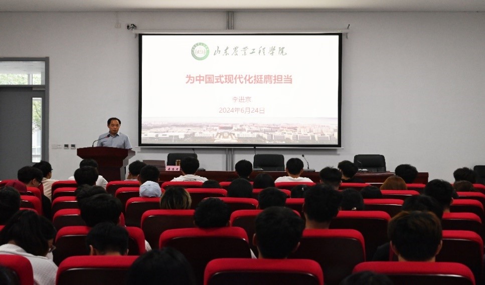 2024年6月24日下午,校党委副书记、校长李进京以“为中国式现代化挺膺担当”为主题,在淄博校区理工西B103,为其联系的机械电子工程学院和资源与环境工程学院学生及部分老师,上了一堂精彩生动的形势与政策课。