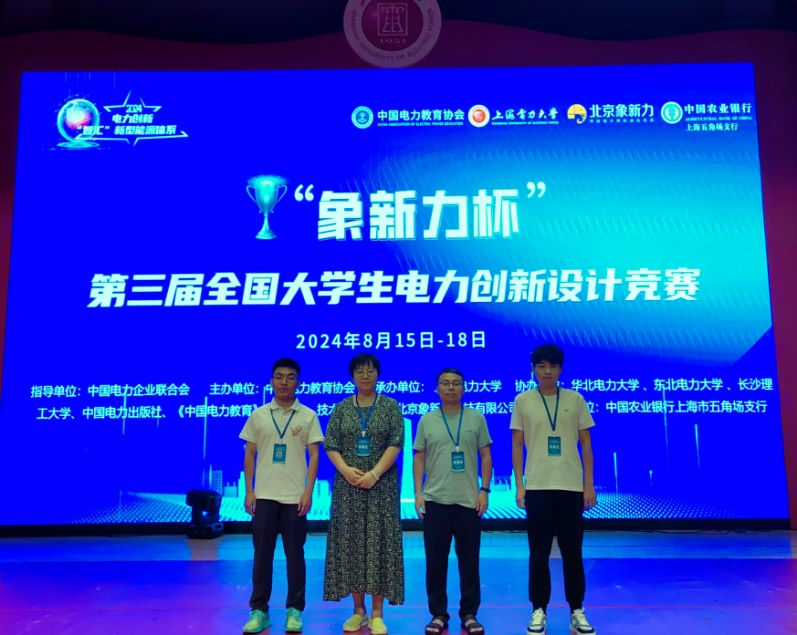 2024年8月15日至18日,我院杨竞等教师带领学生参加了由中国电力教育协会主办,上海电力大学、中电联人才评价与教育培训中心承办的 “象新力杯” 第三届全国大学生电力创新设计竞赛决赛,共获得国赛二等奖2项,三等奖1项的好成绩。