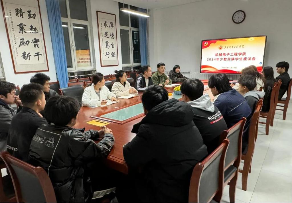 为进一步引导师生树立和铸牢中华民族共同体意识,全面了解机电学院少数民族学生的学习与生活情况。机械电子工程学院于11月18日在理工东楼B304会议室召开了少数民族学生座谈会。学院党总支副书记赵侃、团总支副书记秦玉莹、组织员王宁、辅导员安民康以及13名少数民族学生参加此次座谈会。