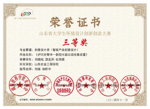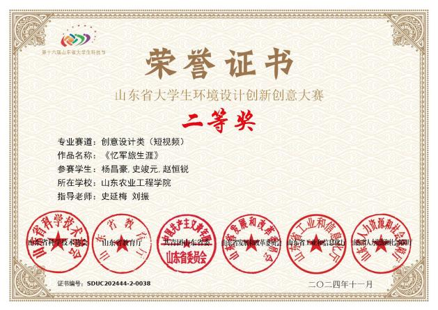 近日,由省科协、省教育厅、团省委、省发展改革委等联合主办的第十六届山东省大学生科技节——第五届山东省大学生环境设计创新创意大赛于11月5日圆满落幕。由刘振老师带队,辅导员徐昕宇、张倩茹共同参加。我院学生在此次比赛中凭借卓越的表现斩获佳绩,为学院赢得了荣誉,共获得省级二等奖1项、省级三等奖3项、省级优秀奖2项。