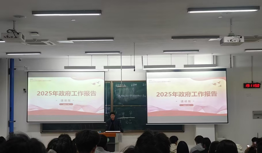 讲座中,单柯程围绕两会的历史沿革、制度内涵及2025年两会的重要成果展开讲解。他结合两会的起源与发展历程,阐述了全国人大和全国政协作为国家政治生活重要平台的作用,并介绍了2025年两会在高质量发展、科技创新、民生保障等方面的决策部署,随后,全体学员共同观看了2025年两会专题视频,直观感受代表委员们建言献策、共商国是的热烈氛围。