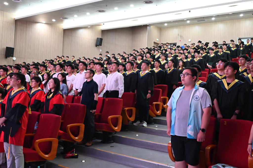 最后,全体教师起立,在歌曲《再见》的动人旋律中用最热烈的掌声为2025届毕业生们送行。现场洋溢着不舍与祝福交织的浓浓温情。至此,机械电子工程学院2025届毕业典礼暨学位授予仪式圆满落幕。