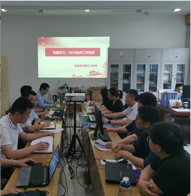 6月11日下午,机电学院2支部举行了以学习2020年政府工作报告为主题的党日活动。机电教工2支部全体党员参加了本次学习,党支部书记赵志桓同志主持本次活动,带领大家集中学习了报告主要内容。在赵志桓同志的主导下,党支部结合当前社会热点对政府工作报告的内容进行了详细的学习,支部内党员相互交流、分享了学习心得。