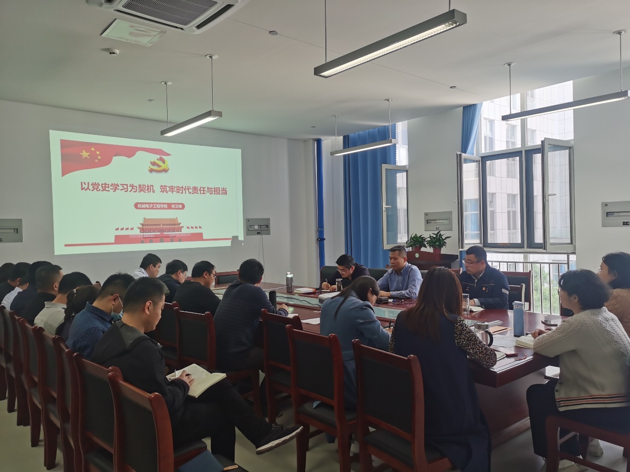 5月6日下午2点,按照党史学习教育方案要求,机械电子工程学院教工第二党支部在淄博校区理工东楼B304开展处级干部讲党课活动,机械电子工程学院党总支副书记、院长宋卫海同志以“以党史学习为契机,筑牢时代责任与担当”为主题为大家上了一堂别开生面的党课,电气教研室和农业工程创新(训练)中心的全体老师参加了此次活动。