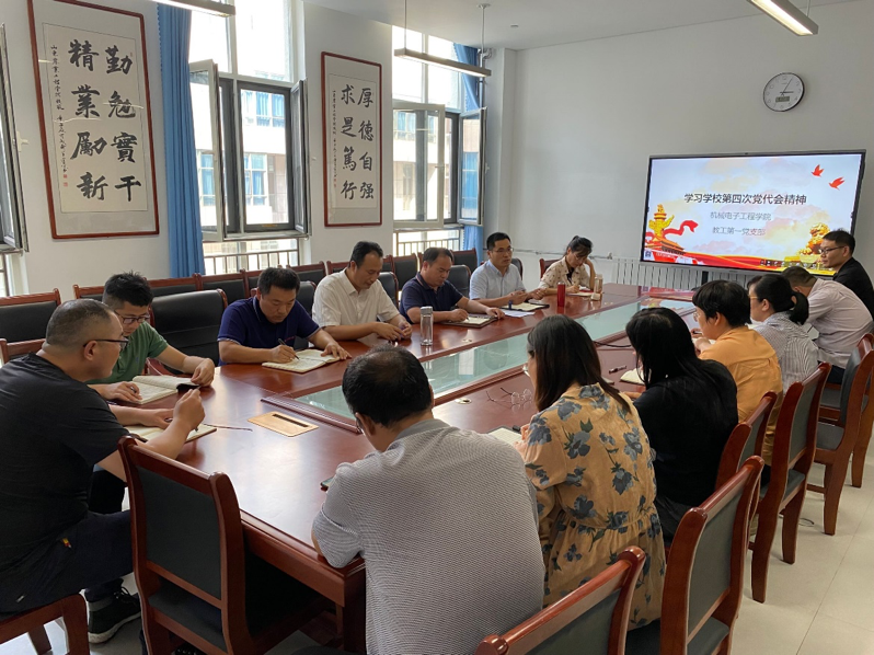 9月22日下午,机械电子工程学院教工第一党支部在淄博校区理工东楼B304学习学校第四次党代会精神活动,会议由党支部书记李曰阳主持,党支部15名党员参加了本次活动。