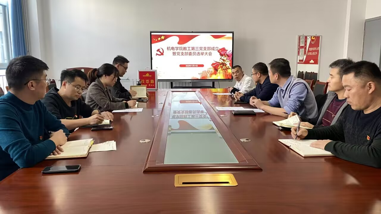以新起点开启新征程,为深入学习贯彻习近平总书记关于加强党支部建设的重要指示精神,根据《中国共产党章程》《中国共产党普通高等学校基层组织工作条例》的有关规定,2022年11月11日下午,机械电子工程学院教工第三党支部成立暨党支部委员选举大会在淄博校区理工东楼B308室隆重举行。
