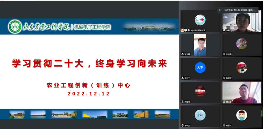 2022年12月12日上午,教工第三党支部开展举行了“学习贯彻党的二十大精神,终身学习向未来”主题党日活动,活动由党支部书记刘伟丽主持,教工第三党支部全体党员及农业工程创新(训练)中心全体教师参会。