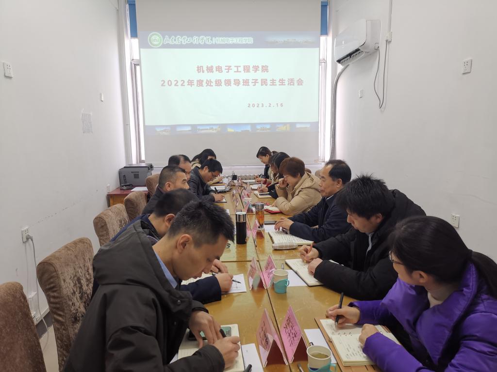 按照校党委工作要求,2月16日下午,机械电子工程学院在济南校区教师办公室召开2022年度处级领导班子民主生活会。校党委副书记、校长李进京、国有资产与实验室管理处处长姚雷、学生工作部副部长李艳、学生工作部樊洋洋到会指导。会议由党总支书记马勇主持,学院党总支副书记李震、副院长赵志桓、全体党总支委员、党支部书记、正科级干部和专职组织员参加了会议。