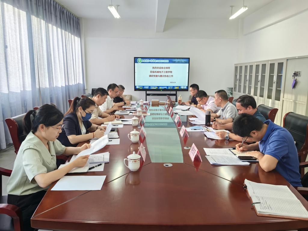 2023年6月20日下午,校党委委员、党委宣传部(教师工作部)部长、党委(学院)办公室主任、机关党委副书记牛化振一行到机械电子工程学院调研党建与意识形态工作。人文学院党总支书记王纪、国土资源与测绘工程学院党总支副书记李华、资源与环境工程学院党总支副书记郑业萌以及宣传部卢文婧陪同调研,调研会议由机械电子工程学院党总支书记马勇主持,党总支副书记李震、副院长赵志桓及全体党总支委员参加会议。
