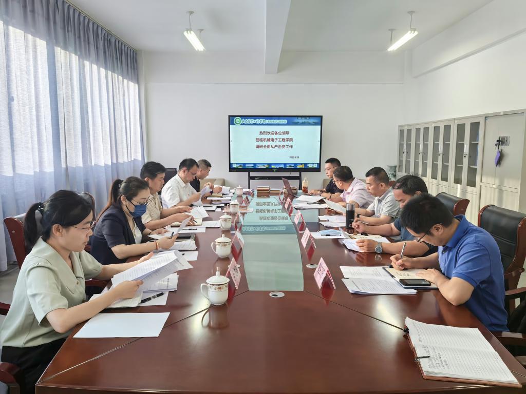 2023年6月20日下午,校党委委员、党委宣传部(教师工作部)部长、党委(学院)办公室主任、机关党委副书记牛化振一行到机械电子工程学院调研全面从严治党工作,人文学院党总支书记王纪、国土资源与测绘工程学院党总支副书记李华、资源与环境工程学院党总支副书记郑业萌以及宣传部卢文婧老师陪同调研,调研会议由机械电子工程学院党总支书记马勇主持,党总支副书记李震、副院长赵志桓及全体党总支委员参加会议。