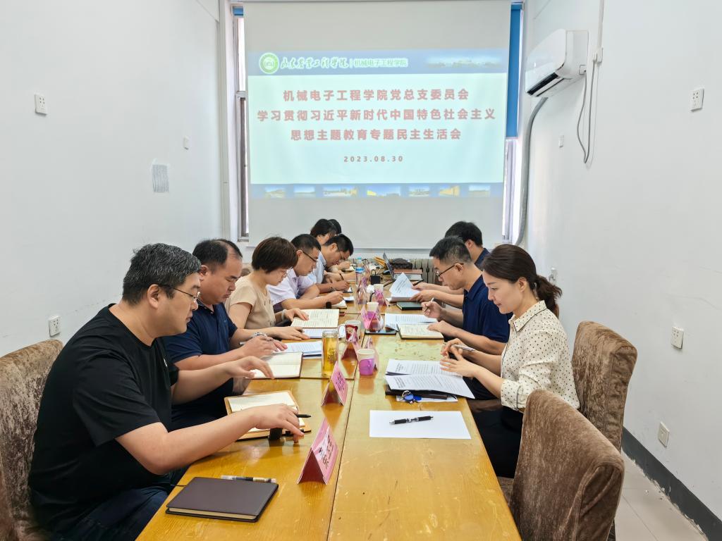 根据校党委的统一安排部署,8月30日,机械电子工程学院党总支委员会召开学习贯彻习近平新时代中国特色社会主义思想主题教育专题民主生活会。校主题教育专题民主生活会第四督导组成员人事处处长张秀广、统战部副部长敬佩、党委(学院)办公室台强勇老师到会指导。会议由党总支书记李艳主持,党总支副书记、院长赵志桓,党总支副书记、副院长李震,全体党总支委员、党支部书记、正科级干部等参加了会议。