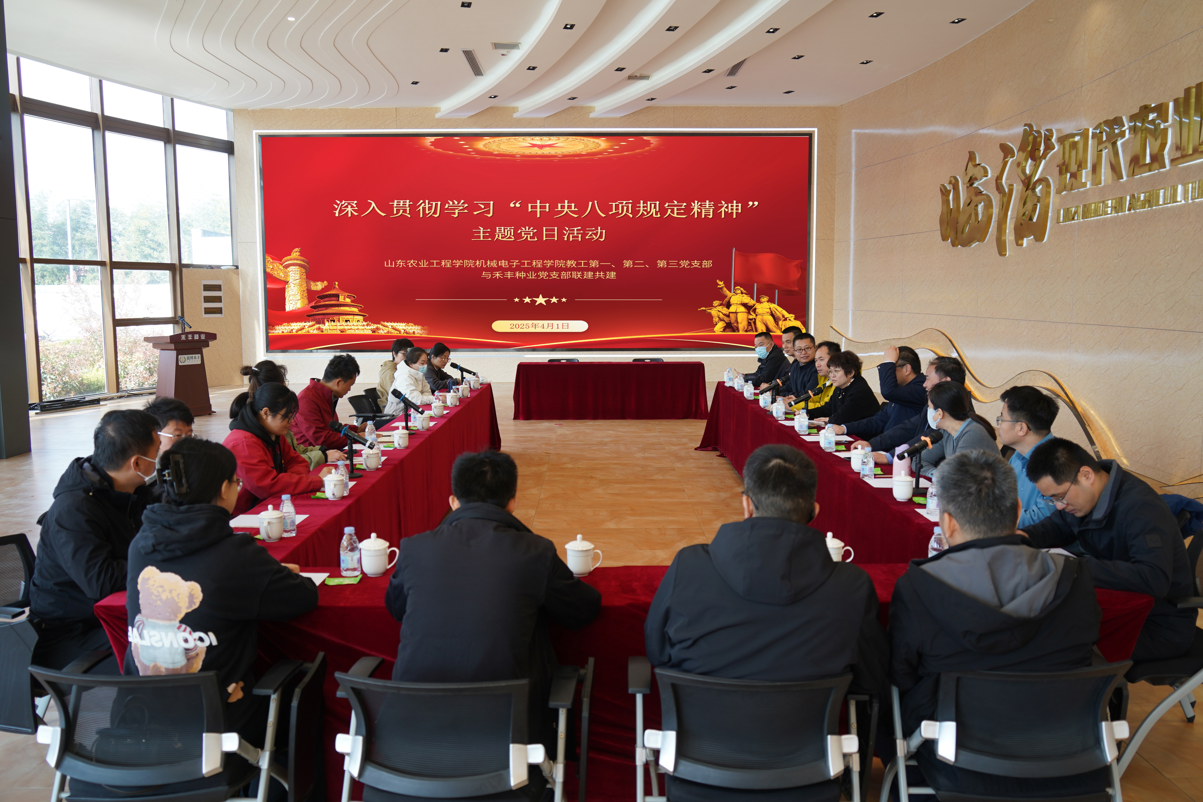 4月1日,机械电子工程学院教工第一、第二、第三党支部与淄博禾丰种业科技股份有限公司党支部联合开展“深入学习贯彻中央八项规定精神”主题党日活动。各党总支各委员、教工第一第二第三党支部党员老师参加活动。