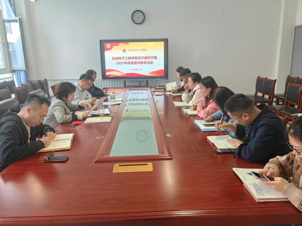 为深入贯彻落实习近平总书记关于保密工作重要讲话及重要指示批示精神,提升学院党员、领导干部保密意识及能力,机械电子工程学院于4月14日下午2点30分在理工东楼B304会议室开展2025年保密宣传教育活动。活动由机械电子工程学院党总支书记李艳主持,机械电子工程学院党总支委员、教研室主任、普通党员代表参加。
