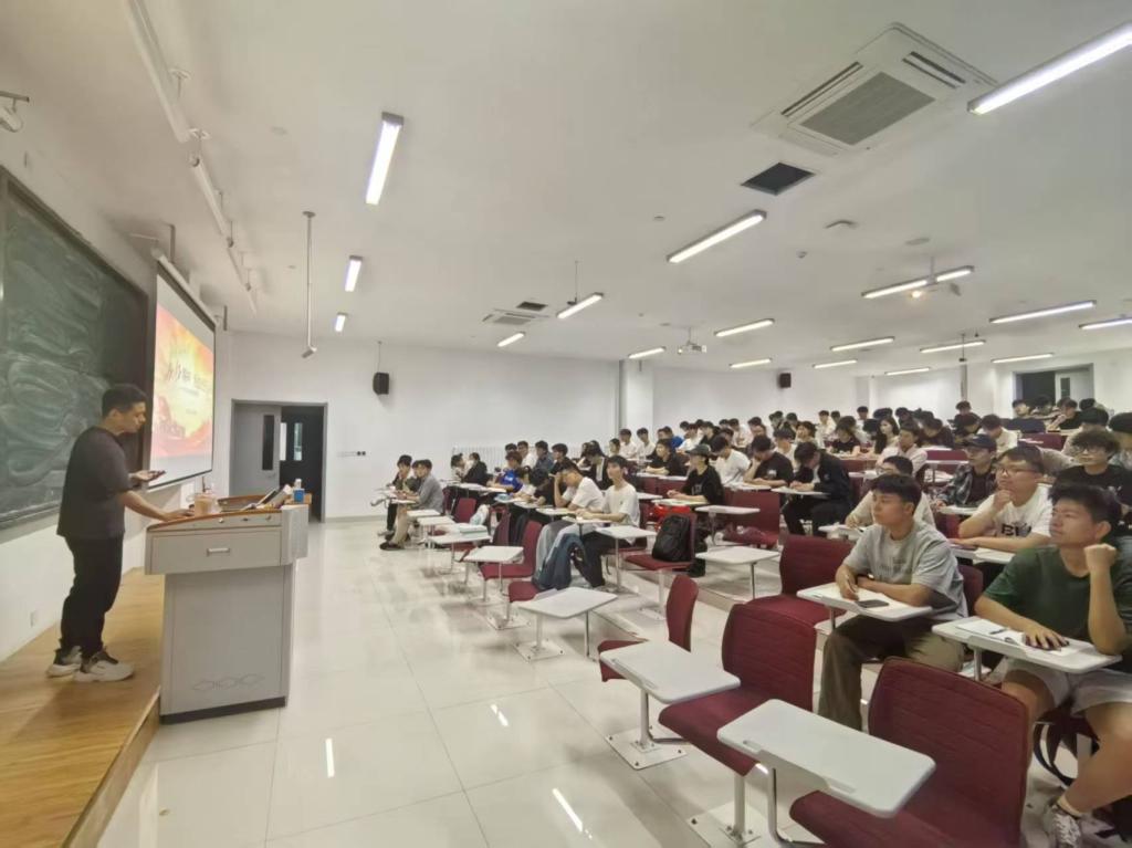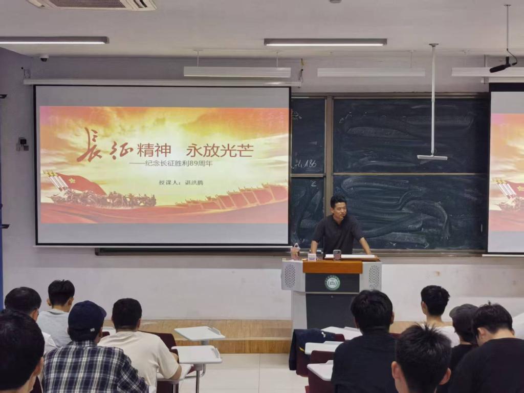 党课中,谌洪腾老师围绕长征的历史回顾、经典战役事件、长征精神的意义等维度,深入剖析长征精神的深刻内涵与厚重历史意义。他带领同学们回溯那段艰苦卓绝的战斗岁月,以生动详实的讲述,重现了巧渡金沙江时的惊心动魄、飞夺泸定桥时的英勇无畏,生动展现了革命先烈们不畏牺牲、勇往直前、百折不挠的崇高品格,让同学们深切感悟到今日幸福生活的来之不易,激发起强烈的爱国主义情怀。最后,谌洪腾老师对学员寄予殷切期望,叮嘱广大青年学子:“要坚定不移听党话、跟党走,怀抱梦想又脚踏实地,敢想敢为又善作善成,立志做有理想、敢担当、能吃苦、肯奋斗的新时代好青年。