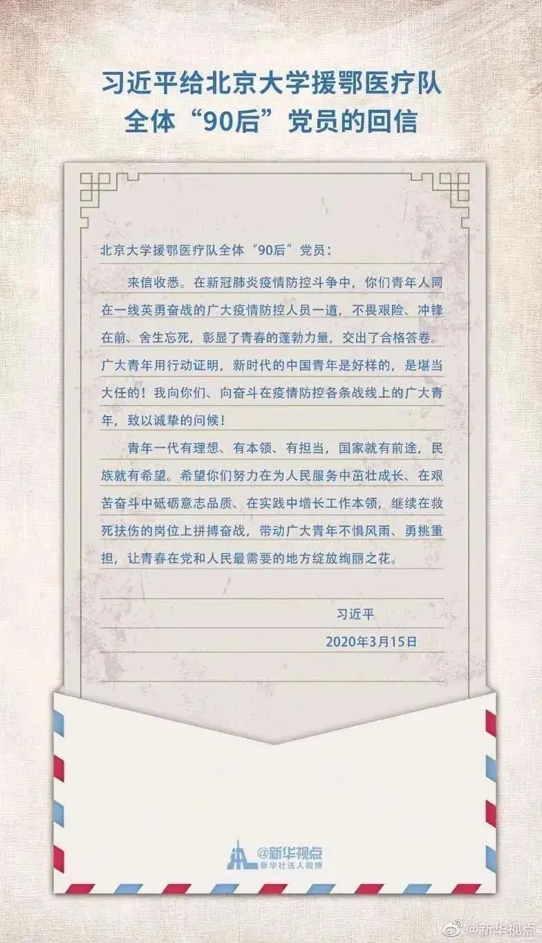 学习习近平总书记给北京大学援鄂医疗队全体“90后”党员的回信