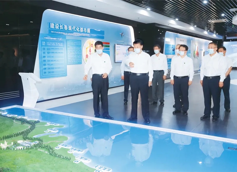 2020年7月22日至24日,中共中央总书记、国家主席、中央军委主席习近平在吉林省考察。这是7月23日下午,习近平考察长春新区规划展览馆,了解新区规划建设情况。新华社记者 王晔/摄