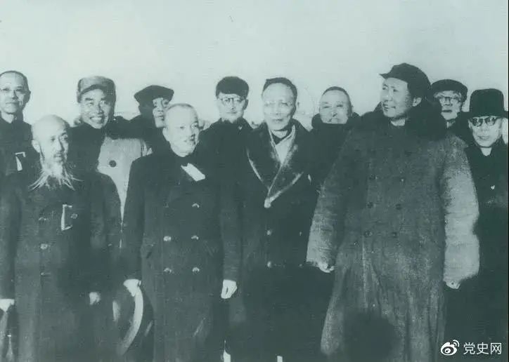 1949年3月,各界人士代表在北京西苑机场同毛泽东、朱德等留影。