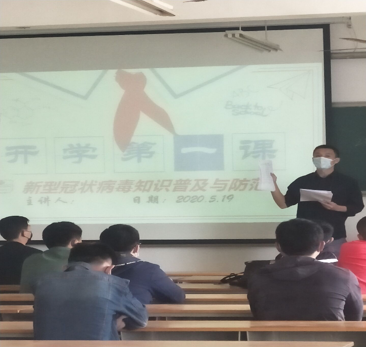5月19日,机械电子工程学院在济北校区1号教学楼411教室组织开展“开学第一课”活动。院团总支书记王世辉、辅导员董小靖带领2016级30名返校毕业生学生,学习新型冠状病毒防疫知识及校内防护措施。