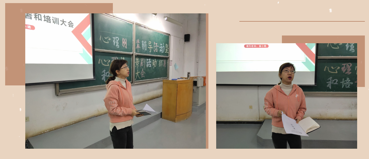 随后,董老师对后期的情景剧比赛进行部署,从心理剧的构成要素、准备步骤等入手做了详细讲解,同时明确各部门成员的分工,让参会同学在心理情景剧活动中各司其职,有序准备,为心理情景剧的后续拍摄打下了良好基础。