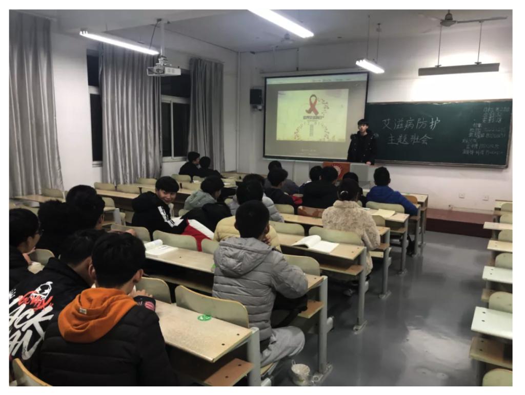 本次班会由各班班委主持,班会现场班委们通过PPT展示的方式,向同学们讲解了艾滋病的危害、传播途径和预防措施,正确引导同学们科学理性的认识艾滋病,消除歧视。