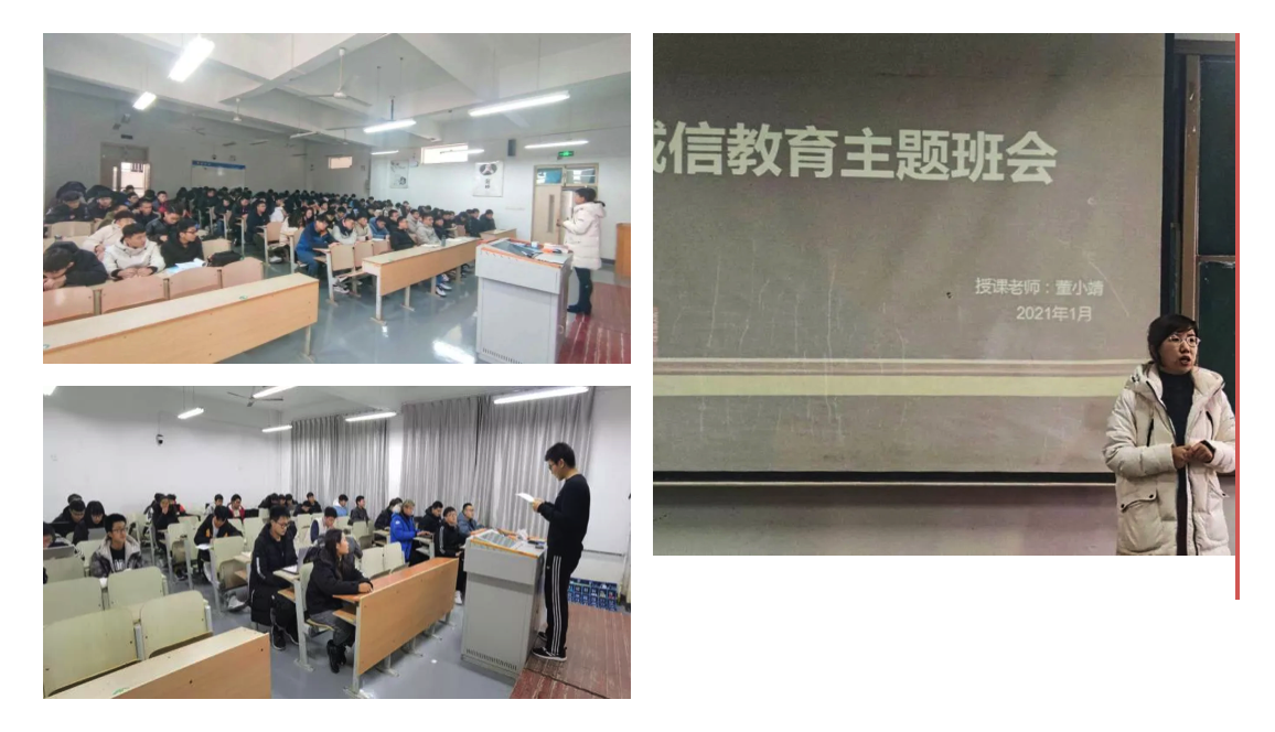 为营造浓厚的学习氛围和诚境,引导学生讲规矩、讲纪律,力争实现零舞弊。2021年1月4日,机械电子工程学院于北校区开展诚信考试教育活动。活动以班会形式开展,由各班级辅导员、班主任及各班班长主持。