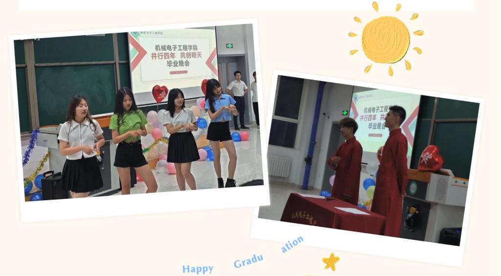 时光荏苒,满载着学识与对未来的期待,又一批机电学子即将迈出学校的大门,走向另一片新天地。愿他们能弘扬新大学生风采,在以后的漫漫人生路中,一路披荆斩棘,到达理想的彼岸!