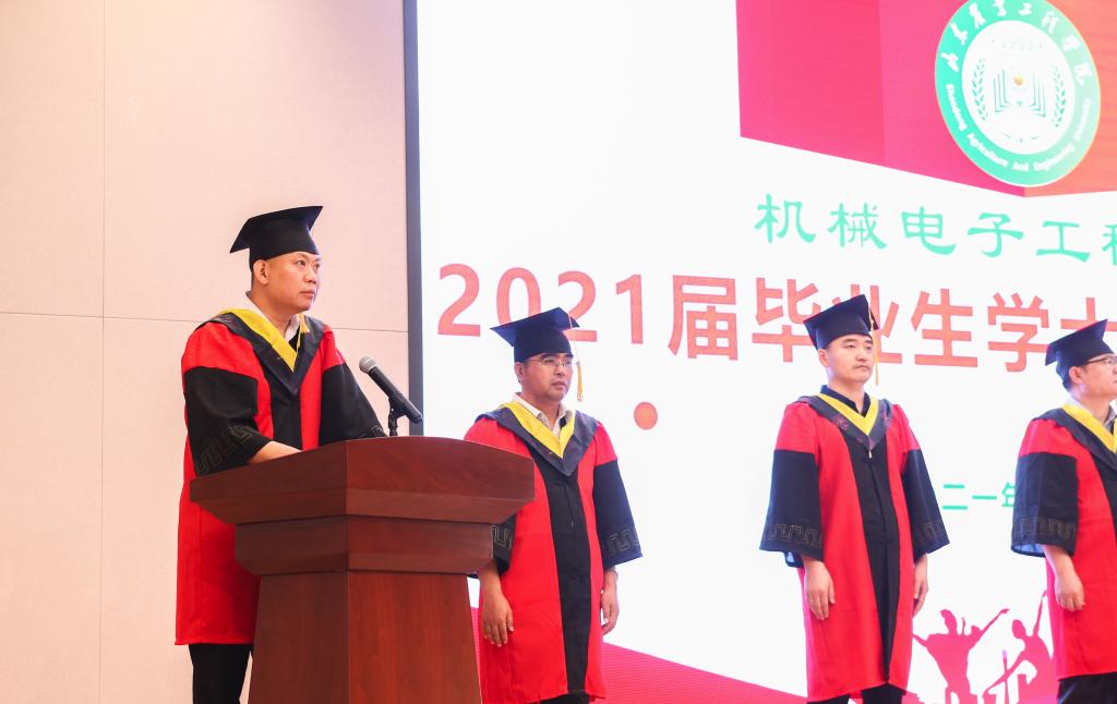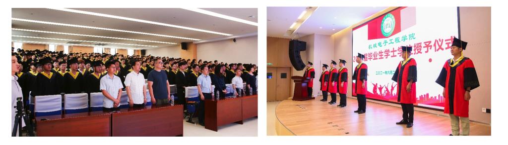 2021年6月24日上午,机电学院隆重举行2021届本科生学位授予仪式。机械电子工程学院院长、学位分委员会主任宋卫海,党总支书记马勇,副院长赵志桓,学院老师、全体辅导员、以及2021届全体本科毕业生参加此次活动,学位授予仪式由赵志桓副院长主持。