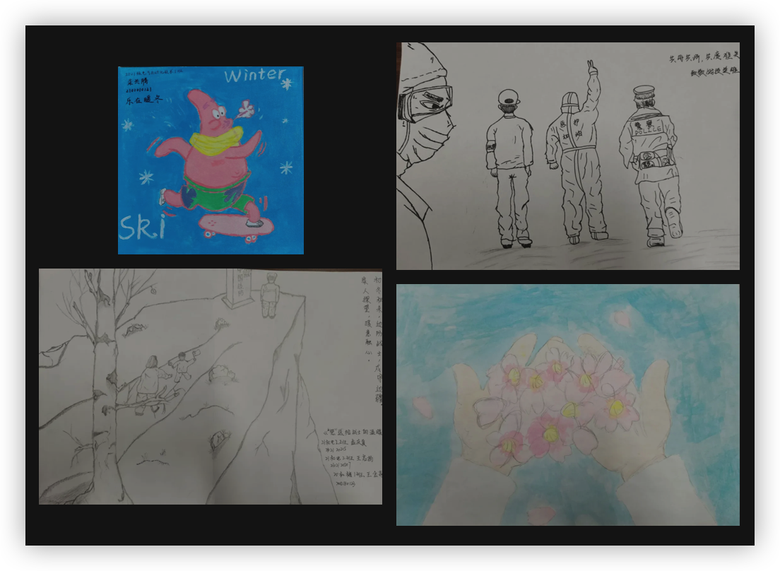 暖阳带雪,灯火可亲。参赛同学们利用各具特色的手绘、漫画、纯艺等作画技巧,从自己的实际经历出发,再结合自己丰富的想象能力和优秀的创作能力,绘出一幅幅情深义重的冬季绘画作品,展现了他们积极向上的精神状态。张张绘画作品都展示出我院学子浓厚的艺术修养和独特的审美情趣,最终经过层层评选,栾兴腾荣获一等奖,于志成、张思远荣获二等奖,牛宗鹏、鲍庆昊、王启扬、孟庆真荣获三等奖,李梦晴等同学获得优秀奖。