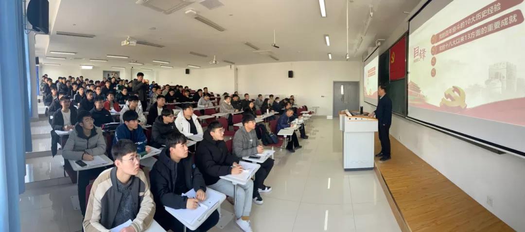 2021年12月14日,校党委委员、副校长杨振宁莅临机械电子工程学院开展党的十九届六中全会精神宣讲报告会,学院党总支书记马勇、副书记李震、副院长赵志桓及部分教师代表、学生党支部全体党员参加了宣讲报告会。