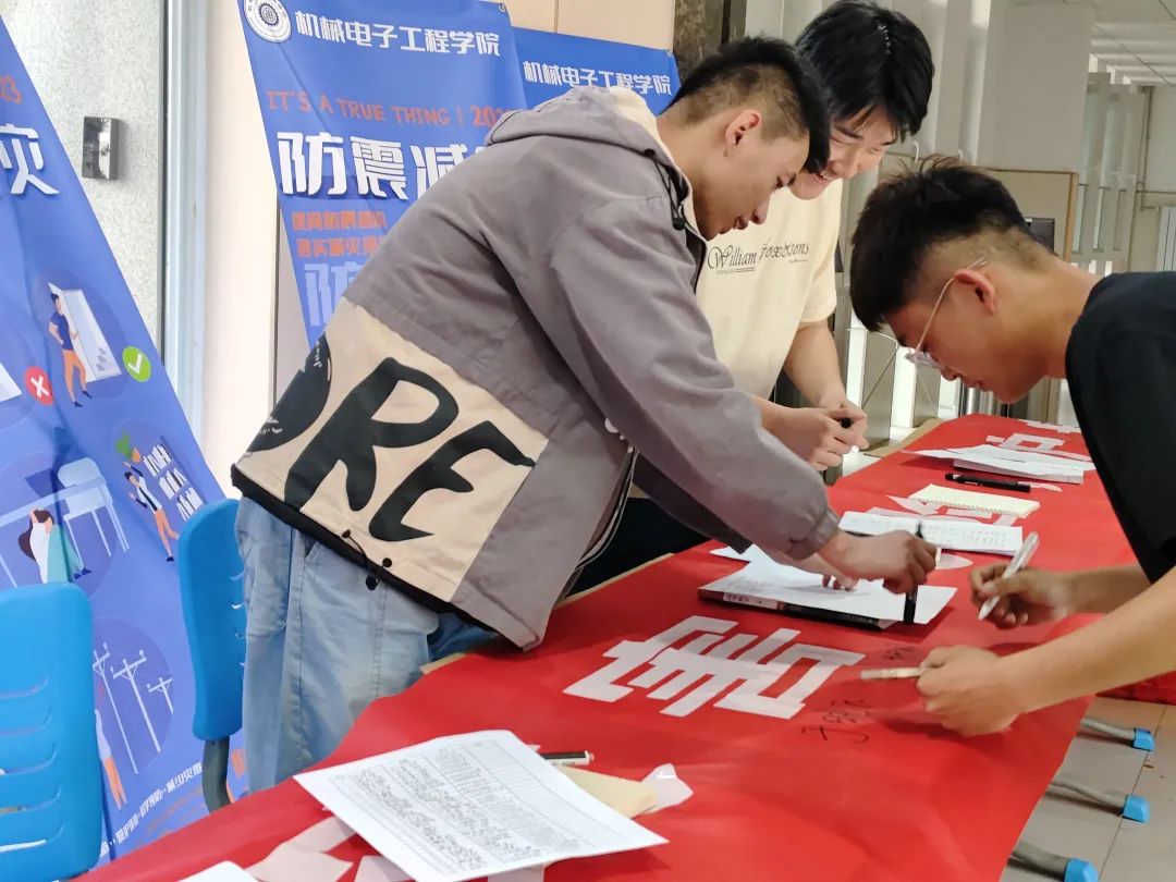 为进一步推进我院安全教育工作的展开,宣传普及防震减灾、自救自护知识,增强同学们的安全防患意识,提高同学们主动防灾、科学避灾、有效减灾的能力,5月12日,机械电子工程学院于一号宿舍楼开展512防震减灾日宣传活动。此次活动由我院学生会宣传部及生活部承办。
