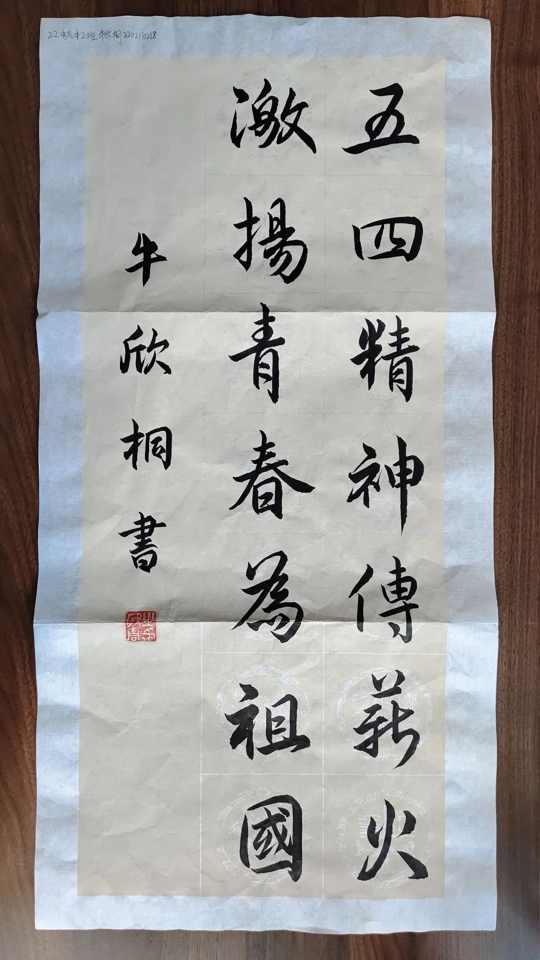 腹有诗书气自华,胸藏文墨虚若谷。本次比赛提交的书法作品和美术作品,由多个方面充分展现了新时代五四精神,同学们纷纷展示了自己对新时代青年形象的理解,提笔落墨中饱含对五四精神的崇敬,色彩鲜明的绘画中勾画出同学们对新时代新青年的向往。经评选,徐靖雯、牛欣桐荣获一等奖,周易通、王铭珑、王元培荣获二等奖,胡明宇、李瑞、郭一诺、宫以娜荣获三等奖,张杨荣获优秀奖。