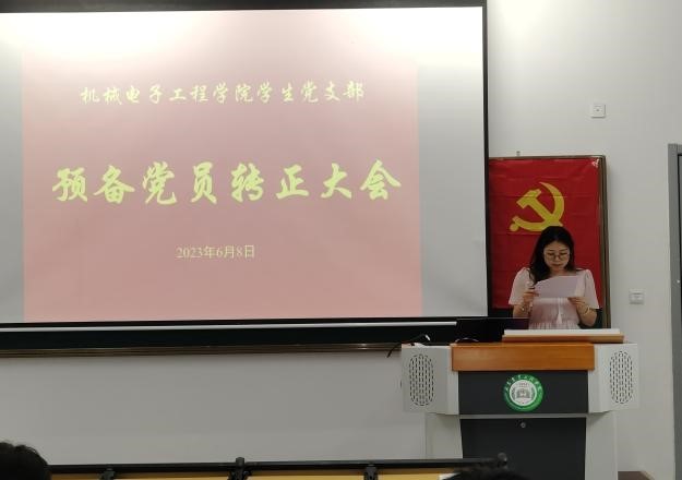 6月8日,机械电子工程学院学生党支部于理工东楼B107教室召开预备党员转正大会,会议由学生党支部副书记秦玉莹老师主持,支部全体党员参加会议。