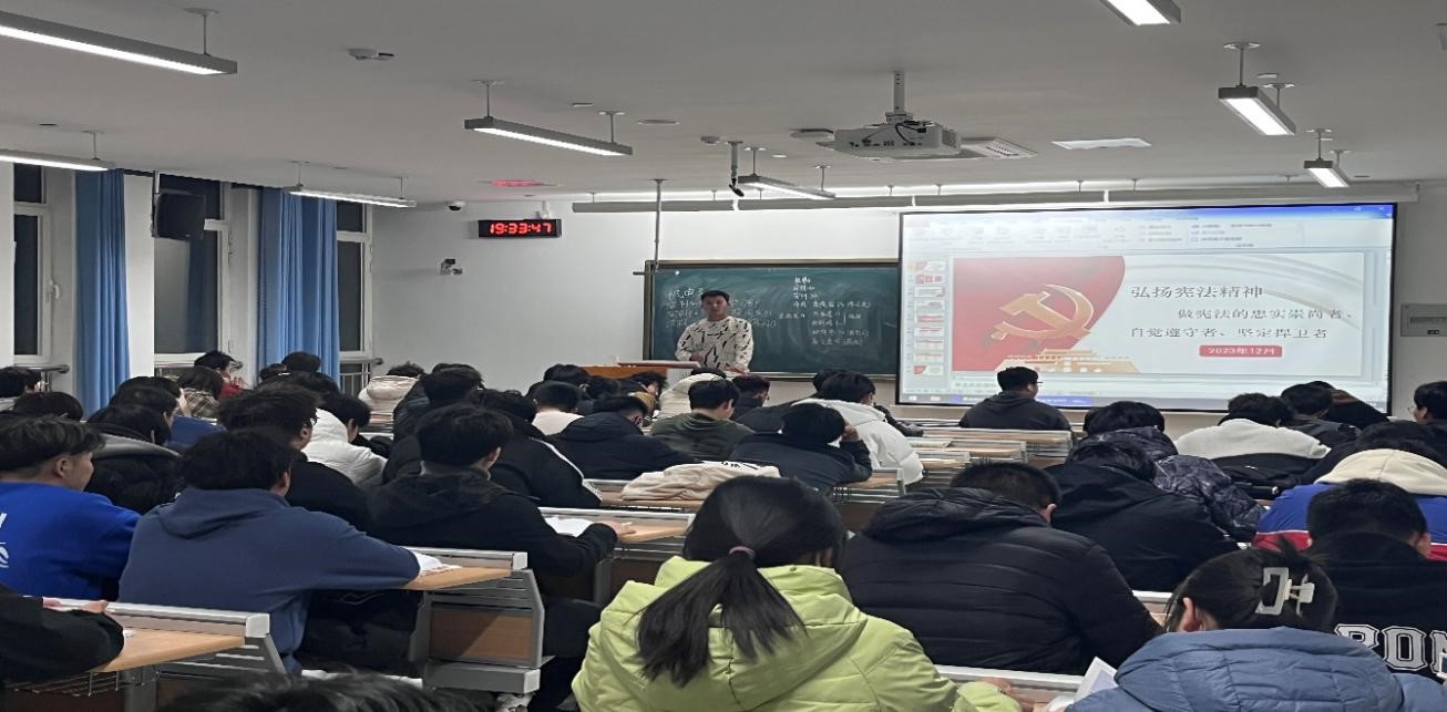 12月4日是国家宪法日,为深入学习贯彻习近平总书记关于宪法的重要讲话精神,增强广大青年学生的宪法意识,机械电子学院特此举办“弘扬宪法精神,树立法治理念”主题团日活动,引导广大青年学生遵法、学法、用法。此次主题团日活动在淄公北B502、B503开展,23机电3班、23机电4班、23机械1班、23机械2班全体同学参加。