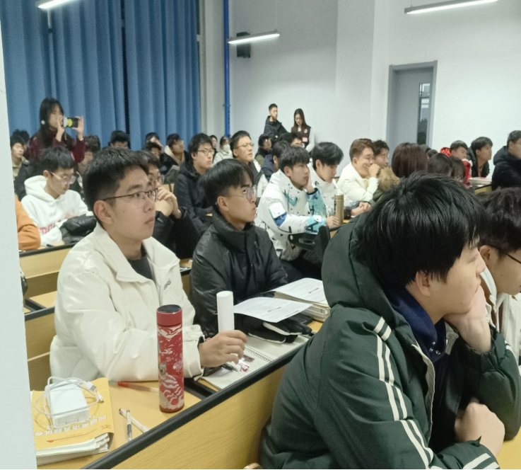 本次活动李繁贺结合自己的个人经历分别从自我介绍、军旅生活分享、应征入伍流程、入伍注意事项及要求、优惠政策、征兵常见问题解答等六个方面展开叙述。首先,带领同学们观看了“猛虎连”宣传片,激发学生投身国防和军队建设,助力强军建国的热情;接着从同学们的实际出发,列举国家对参军入伍大学生的各项优惠政策,包括部队发展、升学优惠、经济补助等方面讲解大学生入伍的优势;最后以自身为例和同学们交流自己的入伍经历和体会。