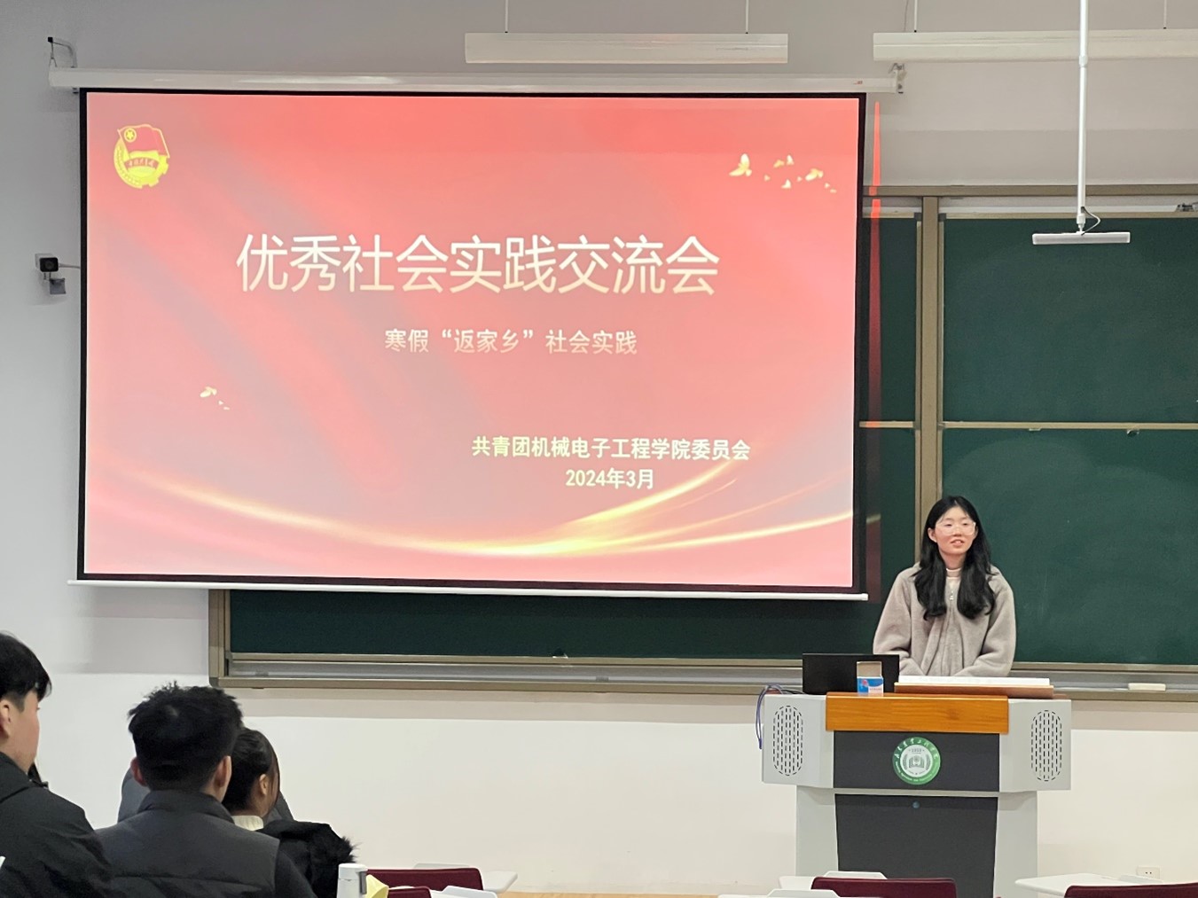 为深入学习贯彻习近平新时代中国特色社会主义思想和党的二十大精神,坚持“受教育、长才干、作贡献”的宗旨,倡导学生做有理想、敢担当、能吃苦、肯奋斗的新时代青年。在寒假期间,机械电子工程学院积极倡导青年学子们运用所学理论知识,返回家乡参与社会实践服务,为家乡的建设与发展贡献力量,共同谱写人生的新篇章。3月12日晚,机械电子工程学院于淄公北楼A104成功举办了2024年“返家乡”优秀社会实践经验交流分享会。优秀个人社会实践同学参加本次分享会。